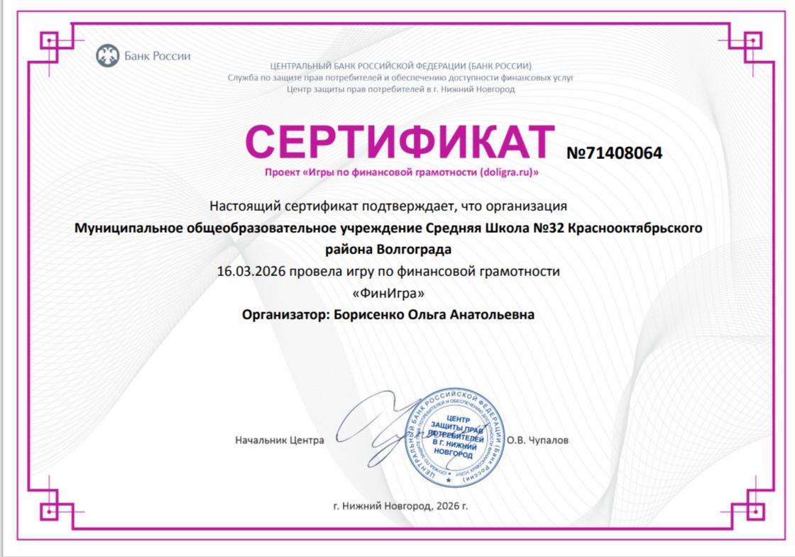 Сертификаты Уроков Банка России и дол-игры